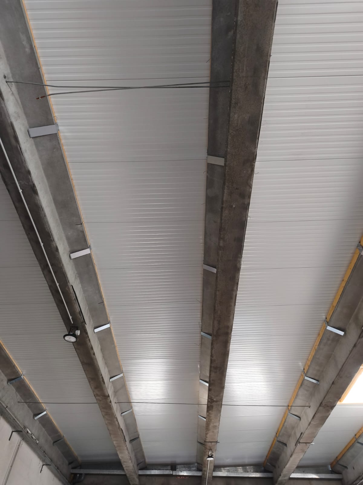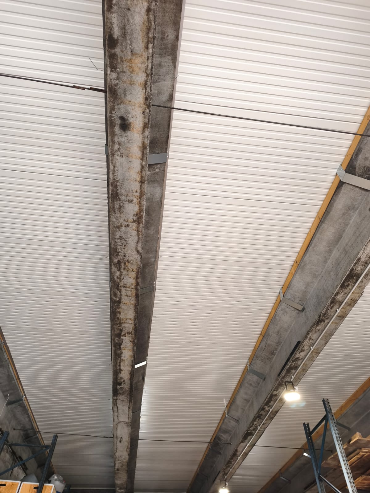 Une fois le désamiantage terminé, la toiture a été entièrement rénovée avec la pose de panneaux sandwich isolants, d’une épaisseur de 60 mm. Ce type de couverture est particulièrement adapté aux bâtiments industriels, agricoles et professionnels, car il offre :