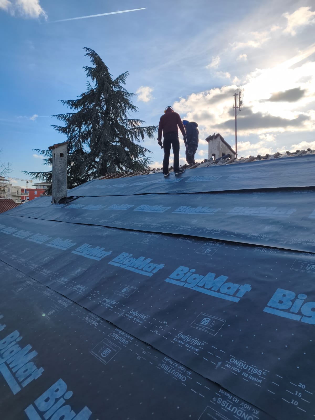 Une fois la structure vérifiée, nous avons mis en place un écran sous-toiture haute performance (HPV).